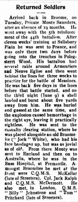 In July 1916 the 28th Battalion, as part of the 2nd Division was involved in a series of attacks aimed at the capture of key German positions and the wearing down of the enemy. By the 23rd July the 1st & 2nd Division had been successful in capturing the Pozières village despite almost continuous artillery fire and repeated German counter-attacks. A further push to take Pozieres heights was planned for the 29th July but the Germans were ready and the attack failed at a cost of 3,500 Australian casualties, including six men from Broome